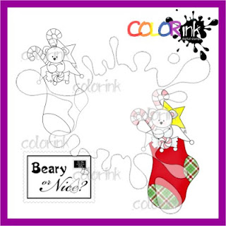 This cute Sock Jingle bear comes from the Jingle Bear Collection. You will get him in B&W and color JPEG format and a sentiment stamp.