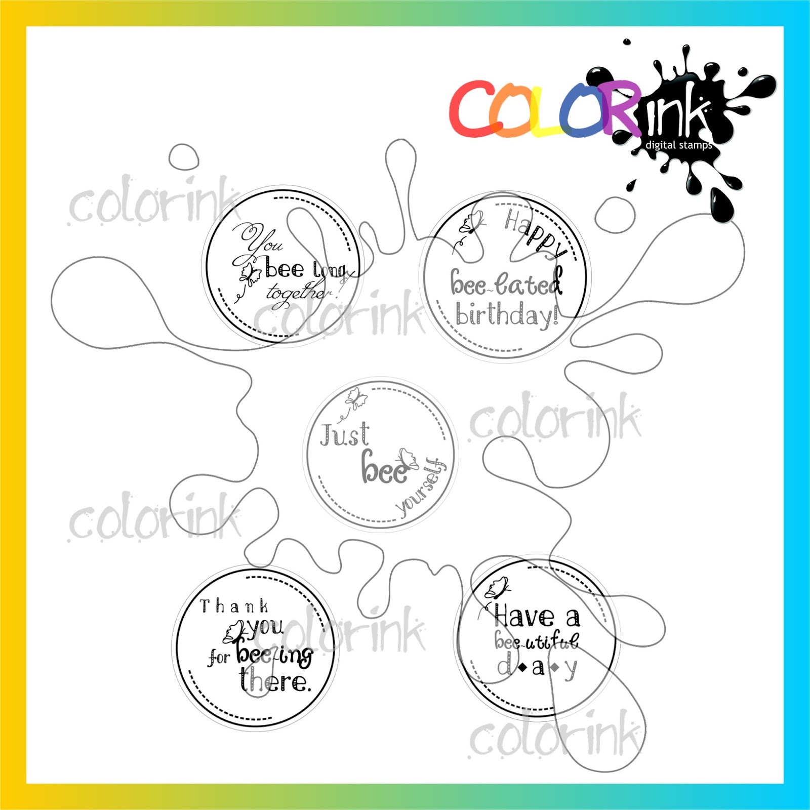 collection of 5 happy bees images.Happy little bees ready for decorating your fabulous cards.! When you purchasing this collection you